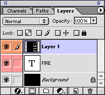 Photoshop Урок: ОГОНЬ средствами Photoshop Шаг 1. На этом первом этапе мы создадим горящееслово как белый, повернутый на 90 градусов против часовой стрелки текстFIRE на черном фоне.Выберите пункт меню File -> New и установитеразмер бумаги 1117 на 790 пикселей, RGB color, разрешение 266 пикселейна дюйм, и в качестве цвета фона выберите белый.Теперь, чтобы сделать фон черным, нажмите Ctrl+I. Это действие инвертирует цвет фона, и он станет черным.На черном фоне создайте новый текстовый слой и белым цветом напишитеслово FIRE шрифтом размера 85, нажмите Enter. Переместите текст такимобразом, чтобы он был отцентрован в нижней половине картинки.Теперь создайте новый слой Layer 1 поверх предыдущих, кликнув на соответствующей пиктограмме или нажав Ctrl+Alt+Shift+N.Склейте все видимые слои со слоем Layer 1 с помощью сочетания Ctrl+Alt+Shift+E.Поверните слой Layer 1 на 90 градусов против часовой стрелки (Edit->Transform->Rotate 90 CCW)На рис.1а показано как к этому моменту должен выглядеть документ. 1a1b Шаг 2. На этом этапе мы четырежды применим \"ветер\" на склеенные слои, а потом повернем изо